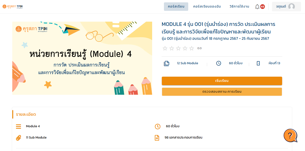 1.4 หน่วยการเรียนรู้ (Module) 4 การวัด ประเมินผลการเรียนรู้ และการวิจัยเพื่อแก้ปัญหาและพัฒนาผู้เรียน ( 18 ก.ค.2567 ถึง 29 ก.ย. 2567 )